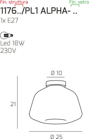 Plafoniera moderna Top Light DOUBLE SKIN 1176CR PL1 ALPHA VE E27 LED vetro lampada soffitto