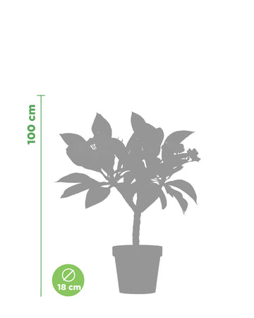 La Plumeria "Mini White" (Frangipani, Pomelia) è una pianta tropicale che presenta fiori colorati e delicati come gusci di uova dai bordi leggermente rosa. Leggero il profumo ma imponente la fioritura e il tipo di crescita come la sorella, Divine.