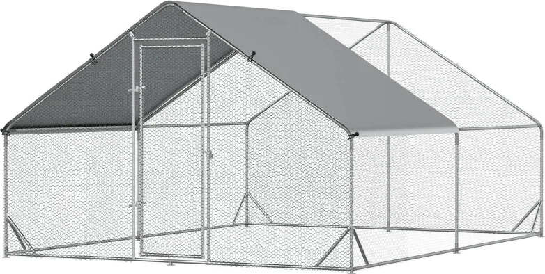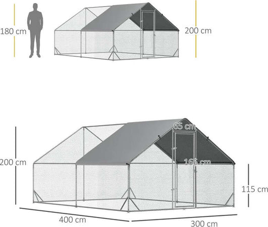 Pollaio da Giardino con Telaio Zincato, Copertura Impermeabile e Rete Esagonale, 3x4x2 m, Argento MS5D51-277V01MS5