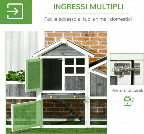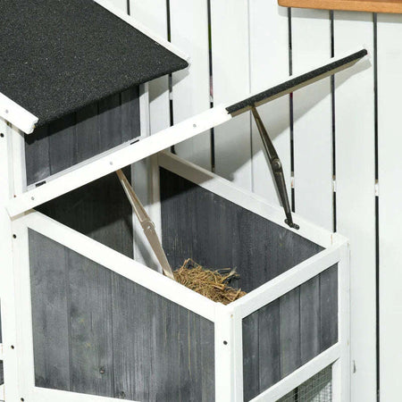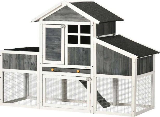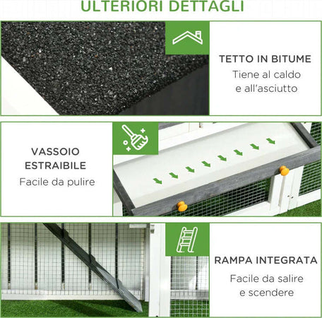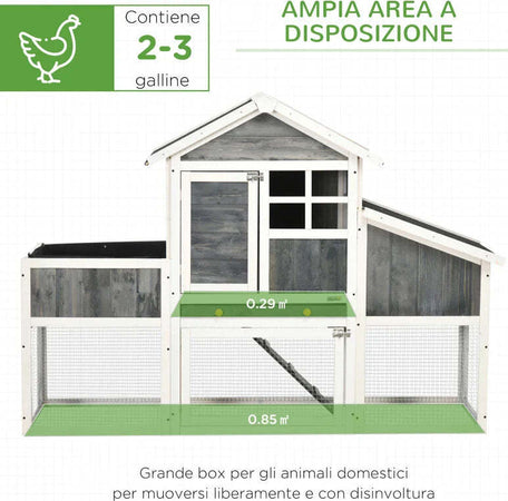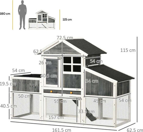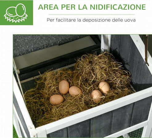 Pollaio Prefabbricato in Legno con Area Aperta, Casetta e Nido, 161.5x62.5x115cm, Grigio MJ4D51-361V00GYMJ4