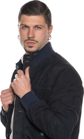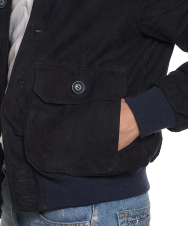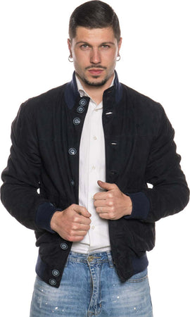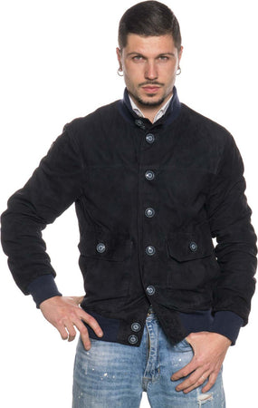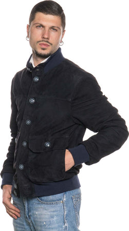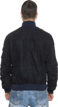 Polo Uomo - Bomber Blu in vera pelle camoscio