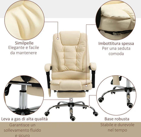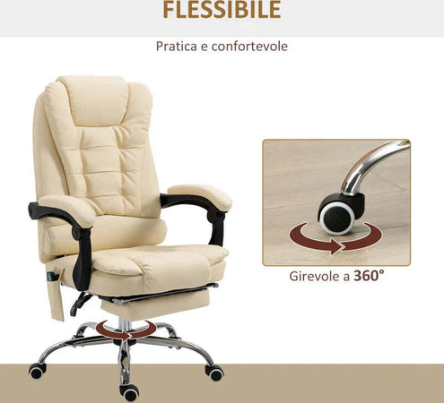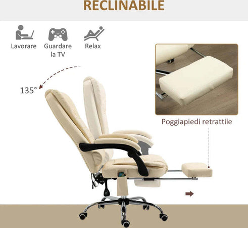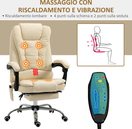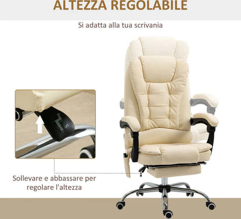 Poltrona Massaggiante Ergonomica ad Altezza Regolabile con 6 Punti Vibranti, 65x160x104 cm, Crema XC6921-318V92CWXC6