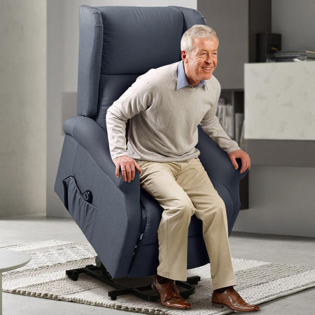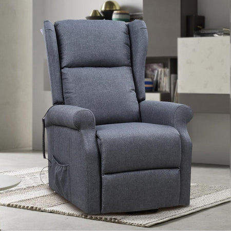 Poltrona Motorizzata Alza Persona Recliner Telecomando Poggia Testa Laterale Grigio