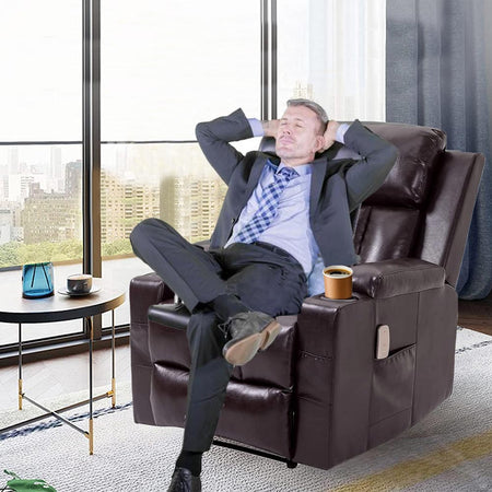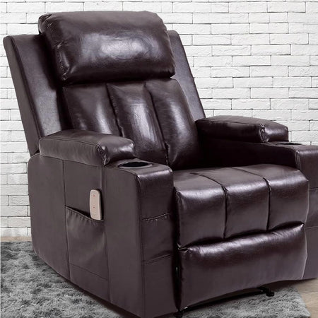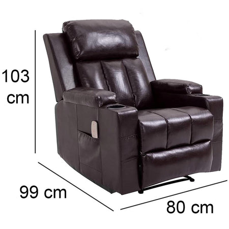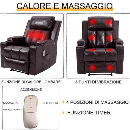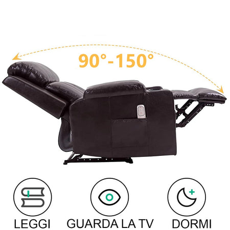 Poltrona Reclinabile Telecomando Massaggiante Schienale Riscaldato Marrone