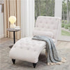 Poltrona Sdraio Chaise Lounge Tessuto Beige Capitonnè 148cm Soggiorno Salotto