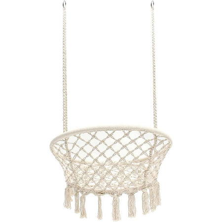 Poltrona Sospesa Amaca Dondolo Intrecciata in Tessuto Beige uso Interni Esterni