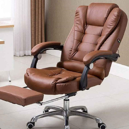 Poltrona Ufficio Massaggiante Presidenziale Reclinabile Poggiapiedi Marrone