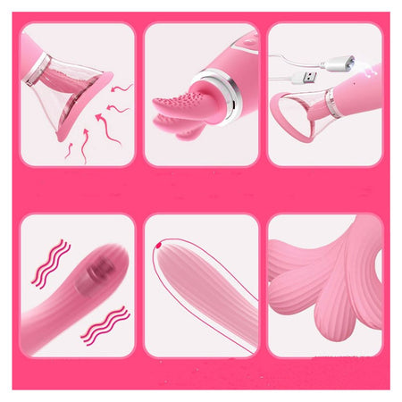 Pompa vaginale vibrante automatica in silicone con lingua stimolante clitoride ricaricabile USB