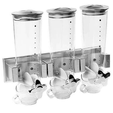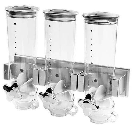 Porta Cereali da Muro 3Posti Dispenser Triplo Distributore Manuale Grigio Casa Hotel