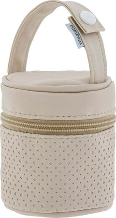 Il Porta ciuccio di Cambrass è ideato per conservare i ciucci o i biberon piccoli (larghezze di 180 cl) del neonato e portarli con sé in maniera comoda e igienica. Grazie alla sua dimensione è facile da portare nella borsa, anche se può essere fissato alla carrozzina grazie alla maniglia superiore dotata di clip. Inoltre, il porta ciuccio ha una chiusura a cerniera YKK di alta qualità con il logo di Cambrass indicato sul cursore.