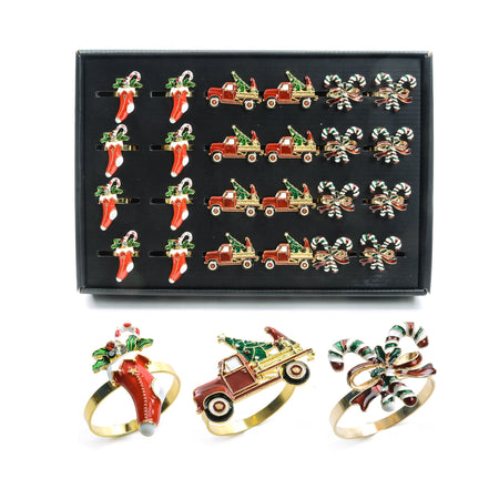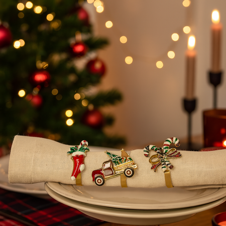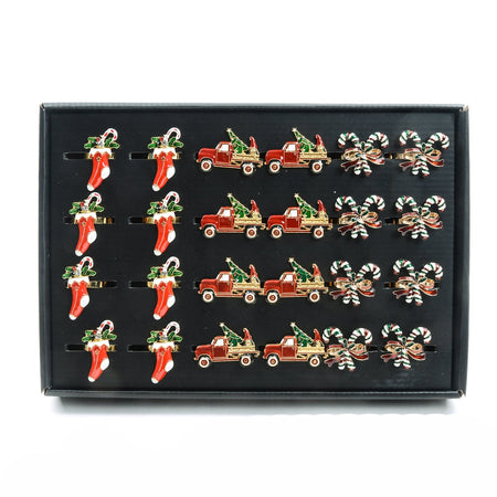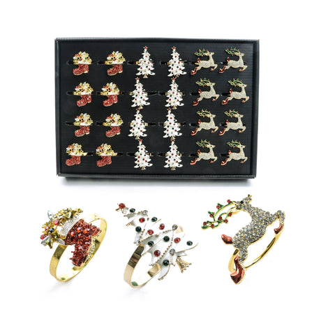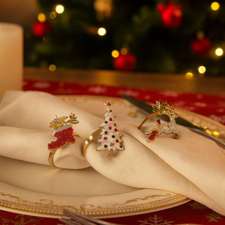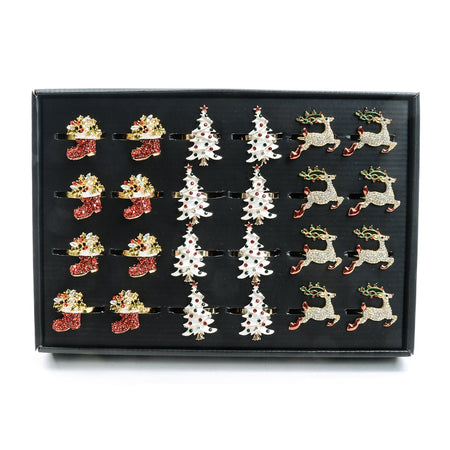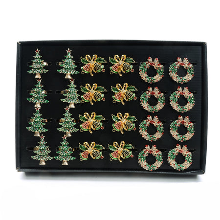 Portatovaglioli moderno natalizio in metallo con perline decorazione natalizia set da 24 pezzi