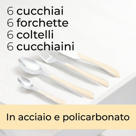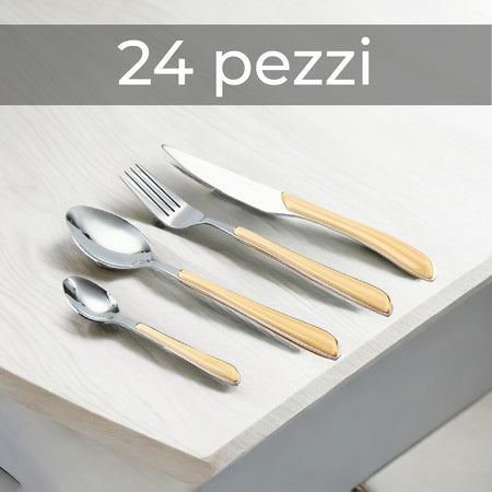 Posate Colorate in Acciaio Inox kit 24pz colore Giallo Shabby Design Ergonomico