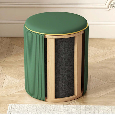 Pouf Contenitore Ecopelle Verde Decoro Oro Poggiapiedi Seduta Imbottita 35x45cm