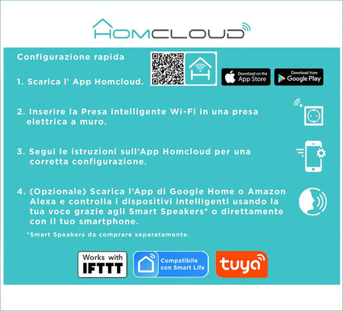 Presa Intelligente Wi-Fi 16A Italiana con controllo energia e comando da Smartphone e Vocale HOMCLOUD
