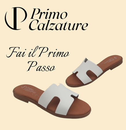 Primo Calzature Eleganti Ciabatte Donna Estive, Sandali Bassi Cuoio, Ciabattina in Pelle Estate, Vero Made in Italy