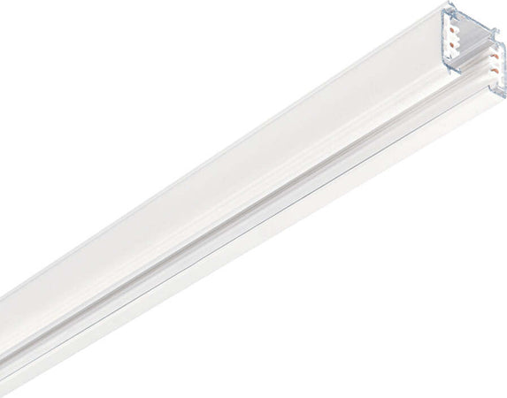 Profilo di alluminio estruso per binari elettrificati trifase;. verniciatura a polveri in bianco o nero, ottimizzato per proettori SMILE in versione on-off e per proiettori QUICK in versione on-off e dimmerabile DALI e 1-10V