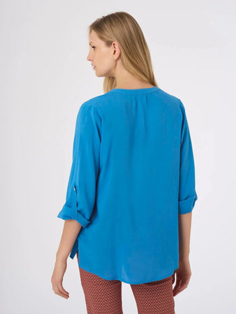 Scopri la nostra camicia da donna in fresca e leggera mussola di viscosa, una fibra di origine cellulosica che unisce le migliori qualità della seta e del cotone.