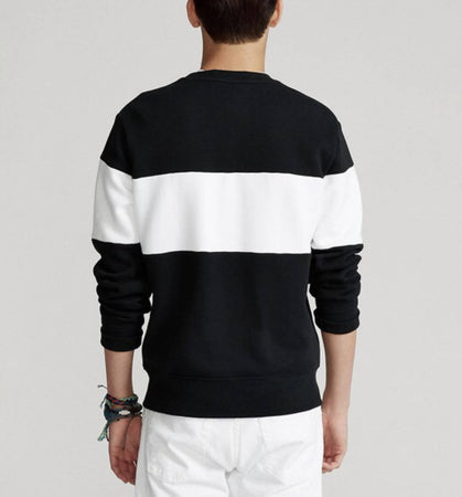 Ralph Lauren Felpa Uomo Polo Sport Usa Senza Cappuccio Girocollo Bianca E Nera Felpa Polsini E Bordo a Coste