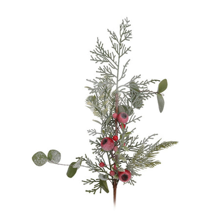 Ramo decorativo natalizio pino con bacche rosse decorazione ambienti h 60 cm