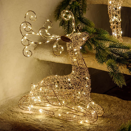 Renna sdraiata luminosa con microled a luce bianco caldo decorazione natalizia