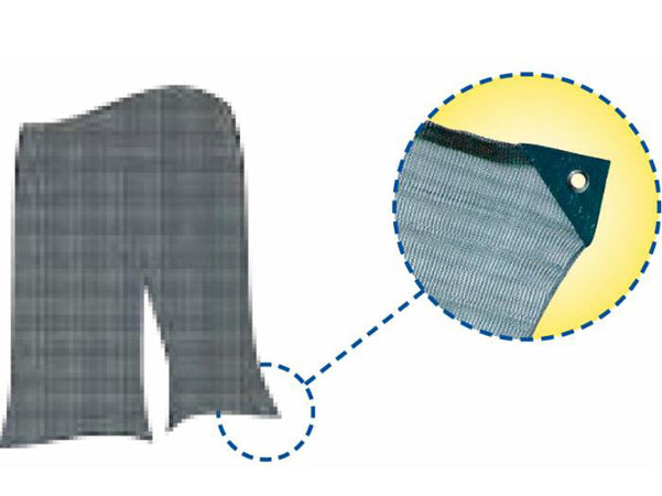 È realizzata con un monofilo di polietilene che pesa solo 92 gr/m². In totale ha un peso di 2 kg. Questo materiale è molto robusto e si presenta con gli angolari rinforzati da occhielli e spaccatura. Resistente ai raggi UV.