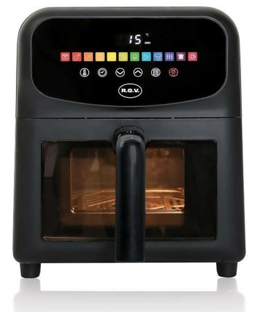 Rgv friggitrice ad aria fry type 6 air window, 6 litri, 12 programmi, antiaderente, senza olio, per arrostire, cuocere, riscaldare, formato famiglia, 1700 w, nero, cucina salutare