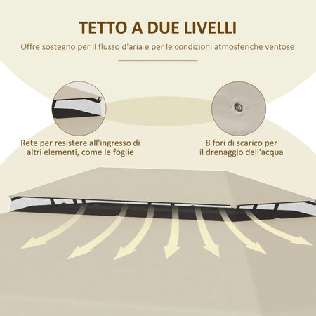 Ricambio Tettuccio per Gazebo 3x4mt Tetto a 2 Livelli in Poliestere Beige AntiUV