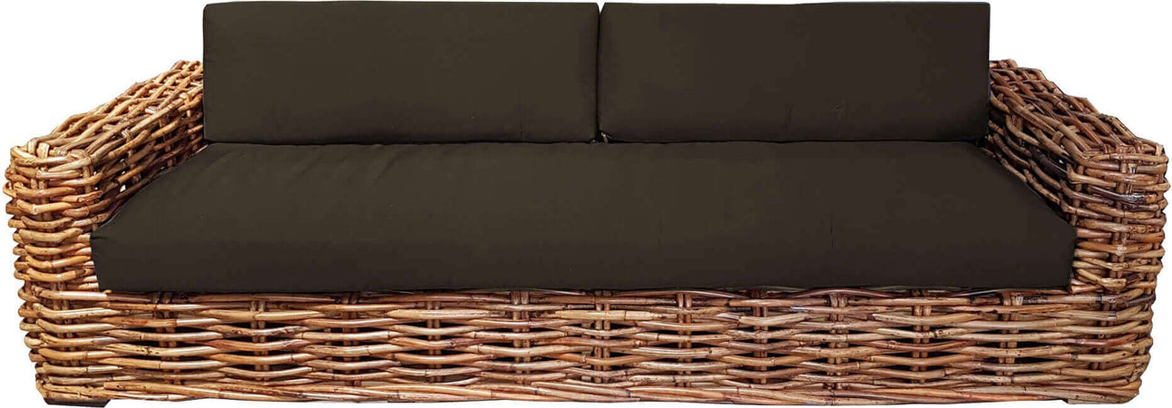 ROSEUS - divano da giardino componibile 3 posti completo di cuscino intreccio in rattan naturale Marrone Milani Home