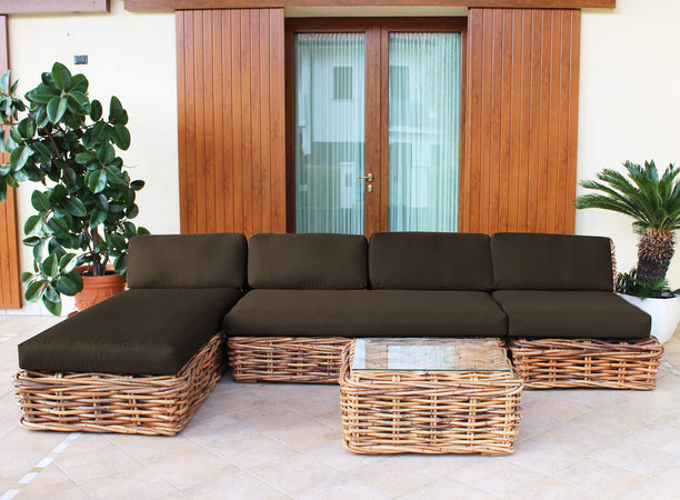 ROSEUS - divano da giardino componibile completo di cuscino intreccio in rattan naturale Marrone Milani Home