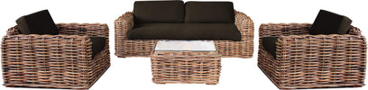 ROSEUS - salotto da giardino completo di cuscini intreccio in rattan naturale Marrone Milani Home