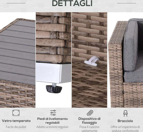 Salotto da Giardino in Rattan da 7 Pezzi con Tavolino e Divano Modulabile con Cuscini, Grigio 860-020V03
