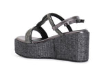 Sandalo doppia fascia con motivo in strass zeppa fascia rafia
