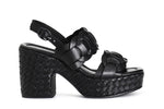 Sandalo doppia fascia in pelle zeppa intreccio
