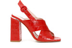 Sandalo incrocio tacco alto in pelle stampa cocco