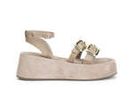 Sandalo zeppa doppia fascia con fibbiae cinturino alla caviglia