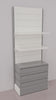 Scaffalatura verniciata da negozio con 3 cassetti a scorrimento su cuscinetti in PVC cm. 100x40x250h