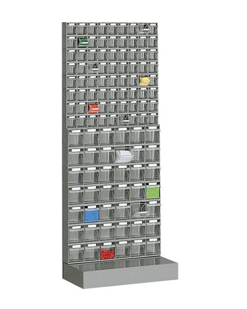 Scaffale a parete practibox con cassette portaminuteria di varia dimensione cm. 60x32,5x150h
