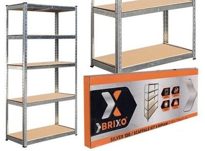 SCAFFALI IN KIT DA 5 PIANI BRIXO SILVER 150 DIMENSIONI CM.L90xP40xH180