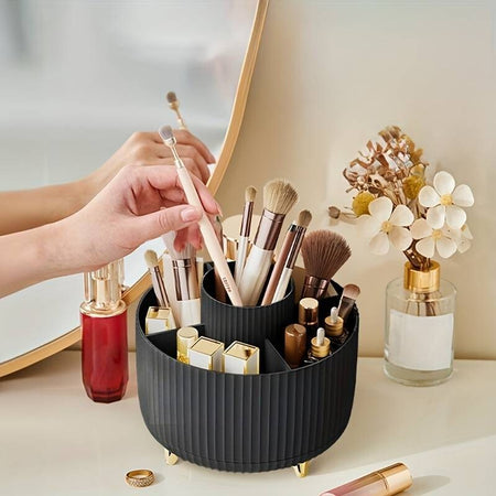 Scatola Porta Trucco Girevole NeraRossetti Ombretti Matite Oro Contenitore Organizer Tavolo