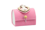 Scatolina scrigno in velluto celeste con corona legno e orsetta gessetto