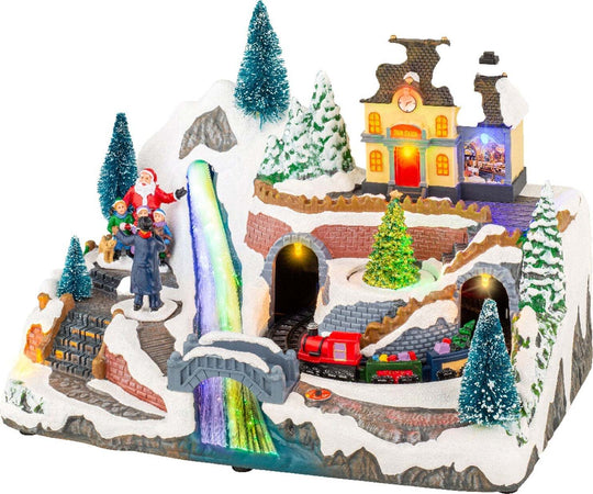 Scena animata a Led con cascata e trenino con luci 21,5 cm