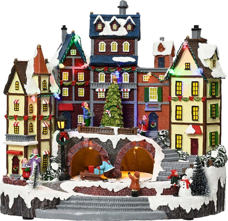 Scena animata a Led con case e albero di natale con luci e movimenti 31 cm