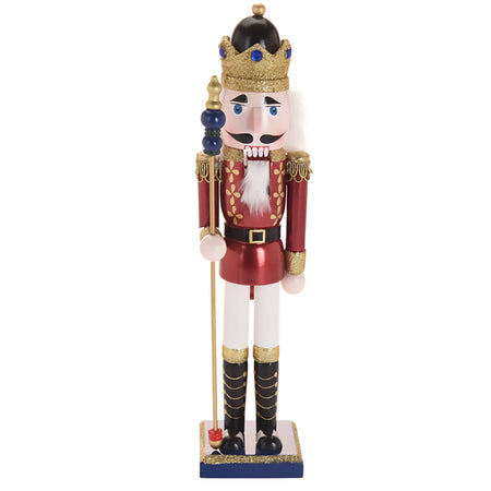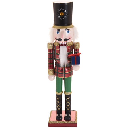 Schiaccianoci natalizio, color rosso e verde, decorazione in legno per interno da 38 cm