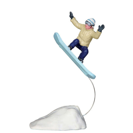 Sciatore in acrobazia nell'aria personaggio per villaggio di Natale in poliresina