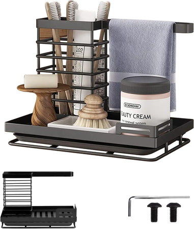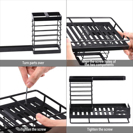 Scolapiatti con Vassoio Antigoccia, da Appoggio per Lavello, Supporto per Utensili e Vaschetta Raccogligoccia