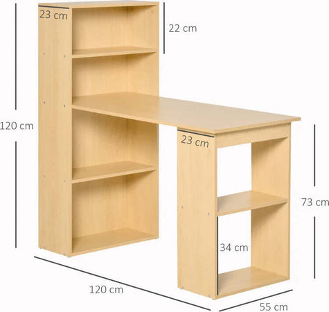 Scrivania Computer con Libreria Salvaspazio, Tavolo da Pranzo per Ufficio e Studio in Truciolato 120x55x120 cm RE1836-069RE1