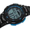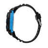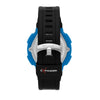 La cassa in materiale sintetico da 51 mm e il cinturino nero in plastica con dettagli blu lo rendono l'accessorio ideale per chi cerca funzionalità e design.