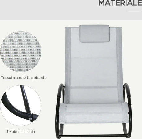 Sedia a Dondolo da Giardino Zero Gravity, Sdraio da Giardino Ergonomica con Cuscino e Tessuto Traspirante per Interno ed Esterno, 105x62x88 cm, Grigia 84A-090GY