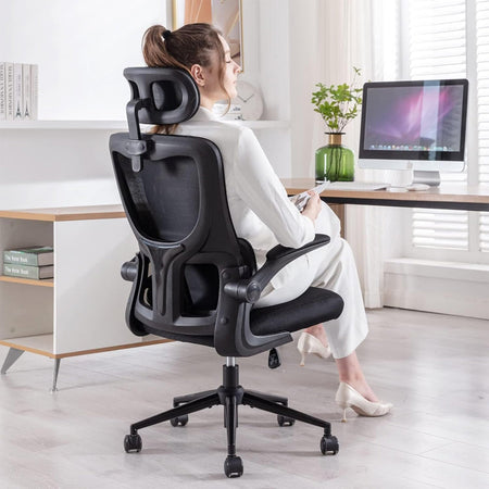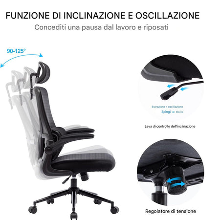 Sedia da Ufficio Ergonomica Nera Rete Traspirante Supporto Lombare e Poggiatesta