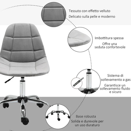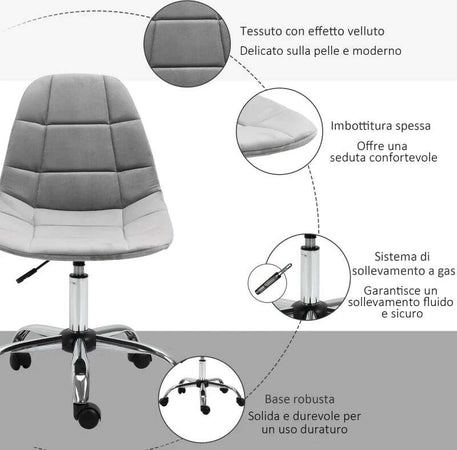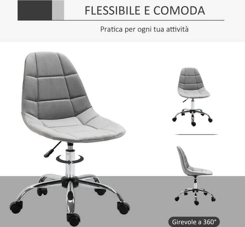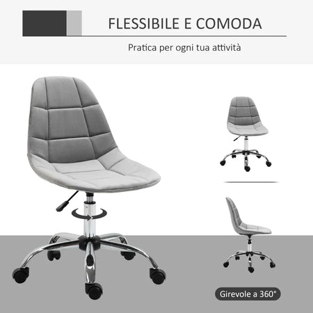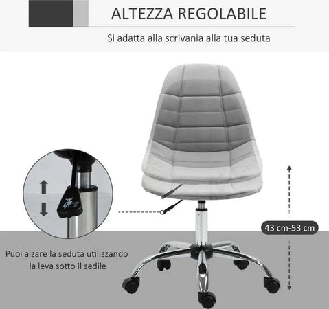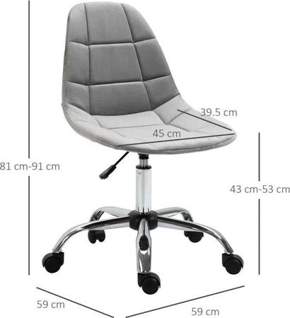 Sedia Girevole , Design Ergonomico e Regolabile Senza Braccioli, Grigio, 59x59x81-91cmED3921-366GYED3